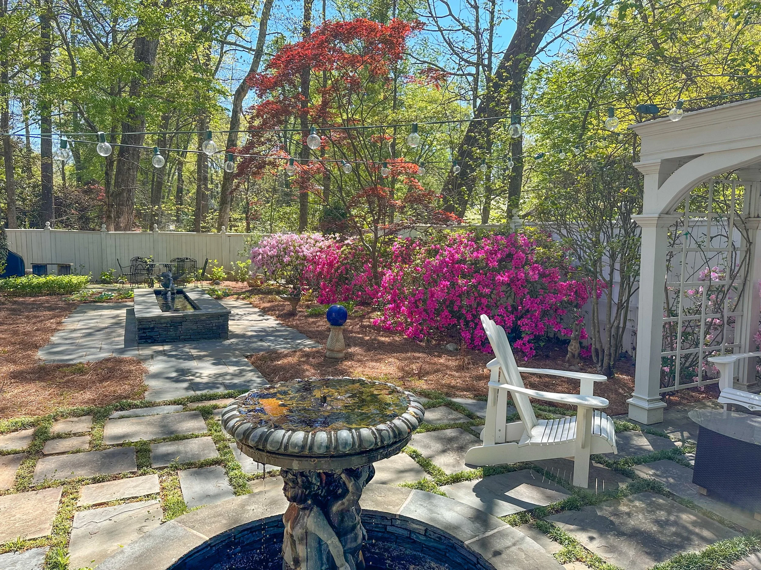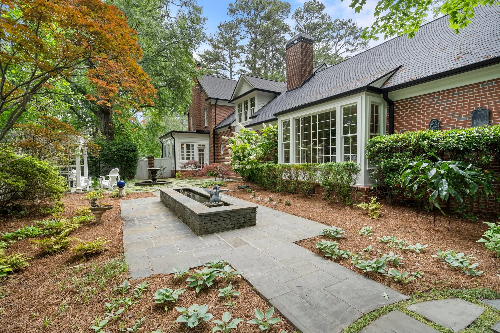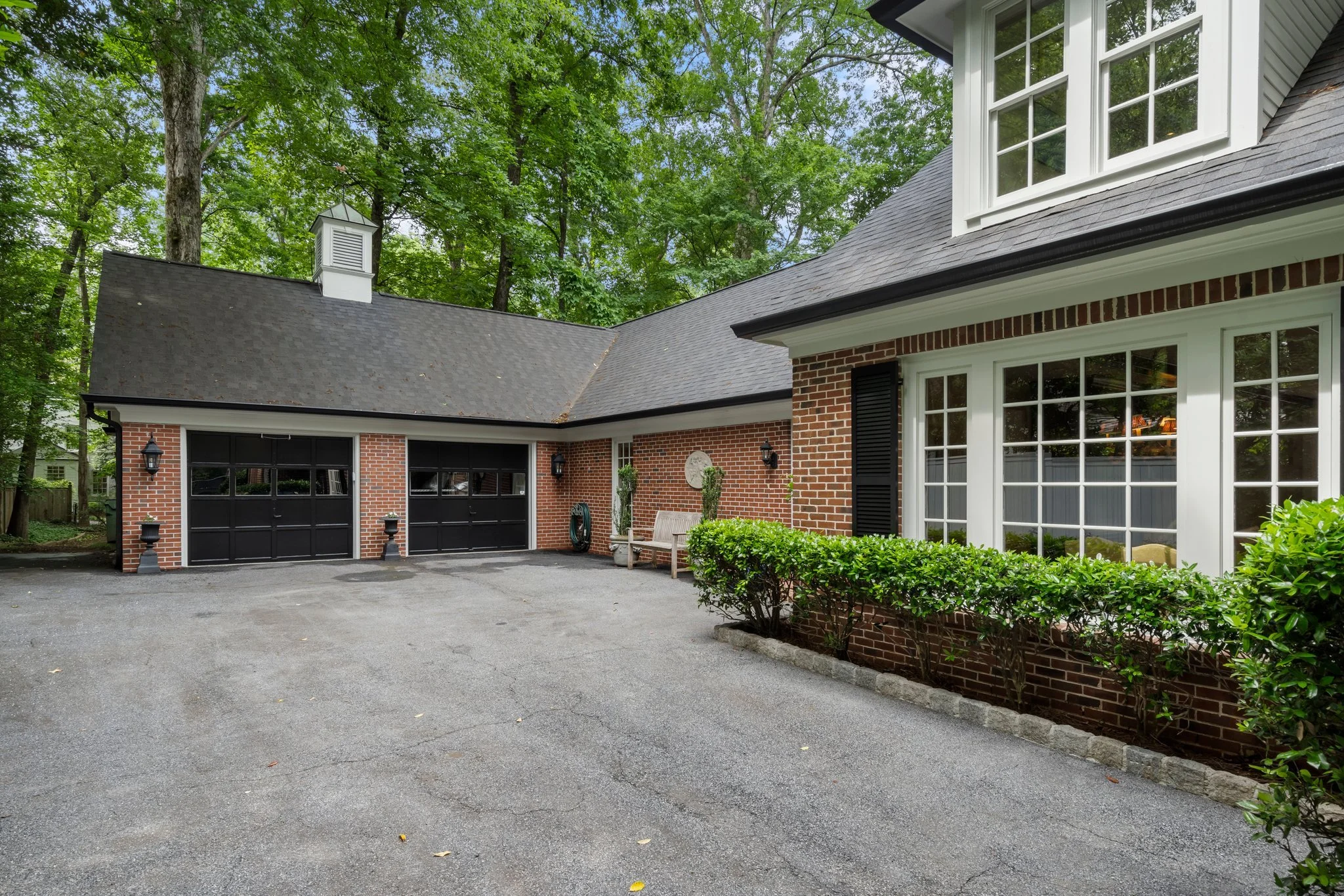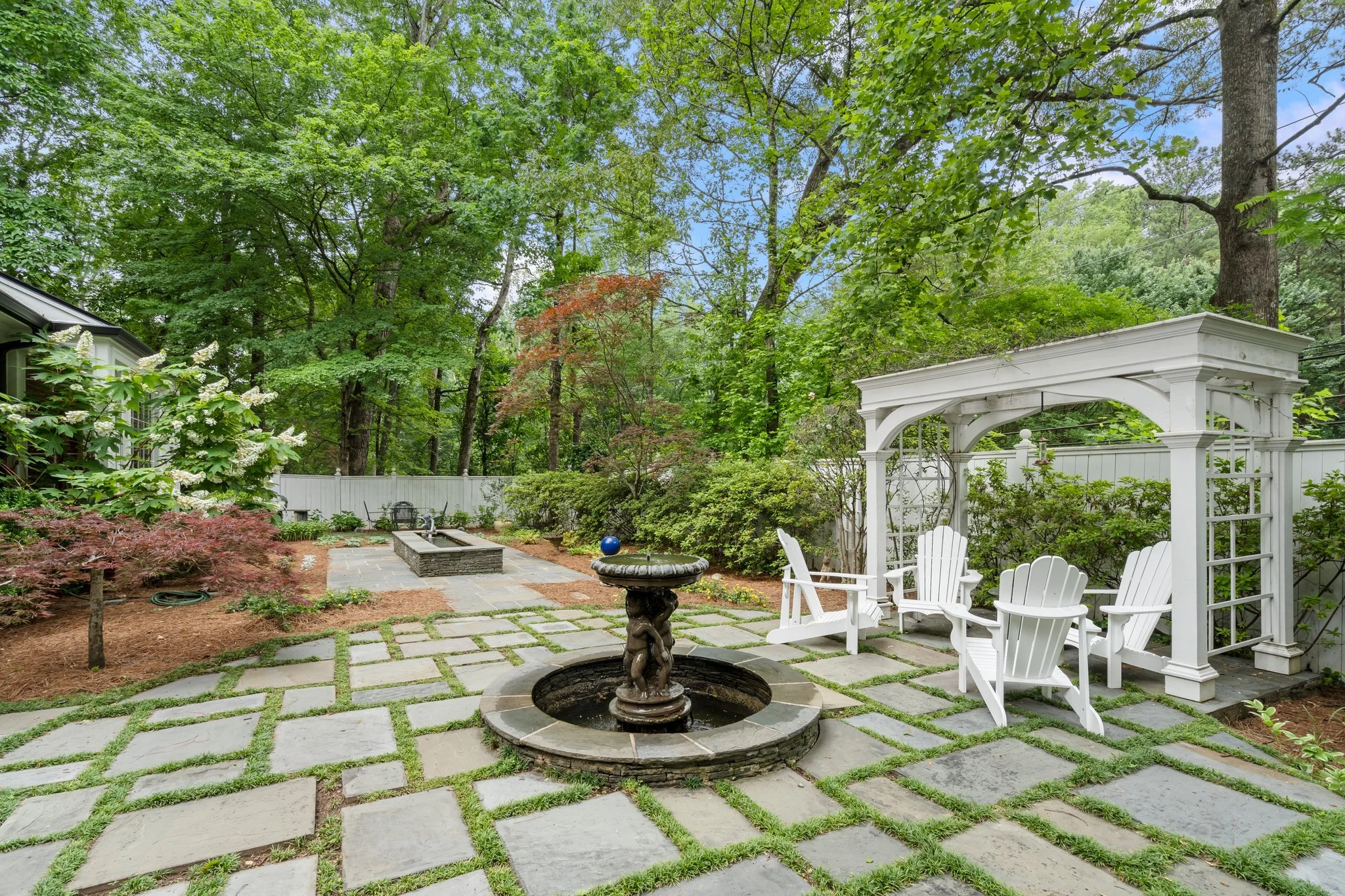 Enjoy beautifully landscaped outdoor spaces showcasing a private, fenced garden, water features, and an arbor, as well as the large rear yard with secondary driveway access from Peachtree Dunwoody Rd. Attached 2-car garage, new roof, HVAC, and exterior paint (2024), whole-home speaker system, and Brinks security.