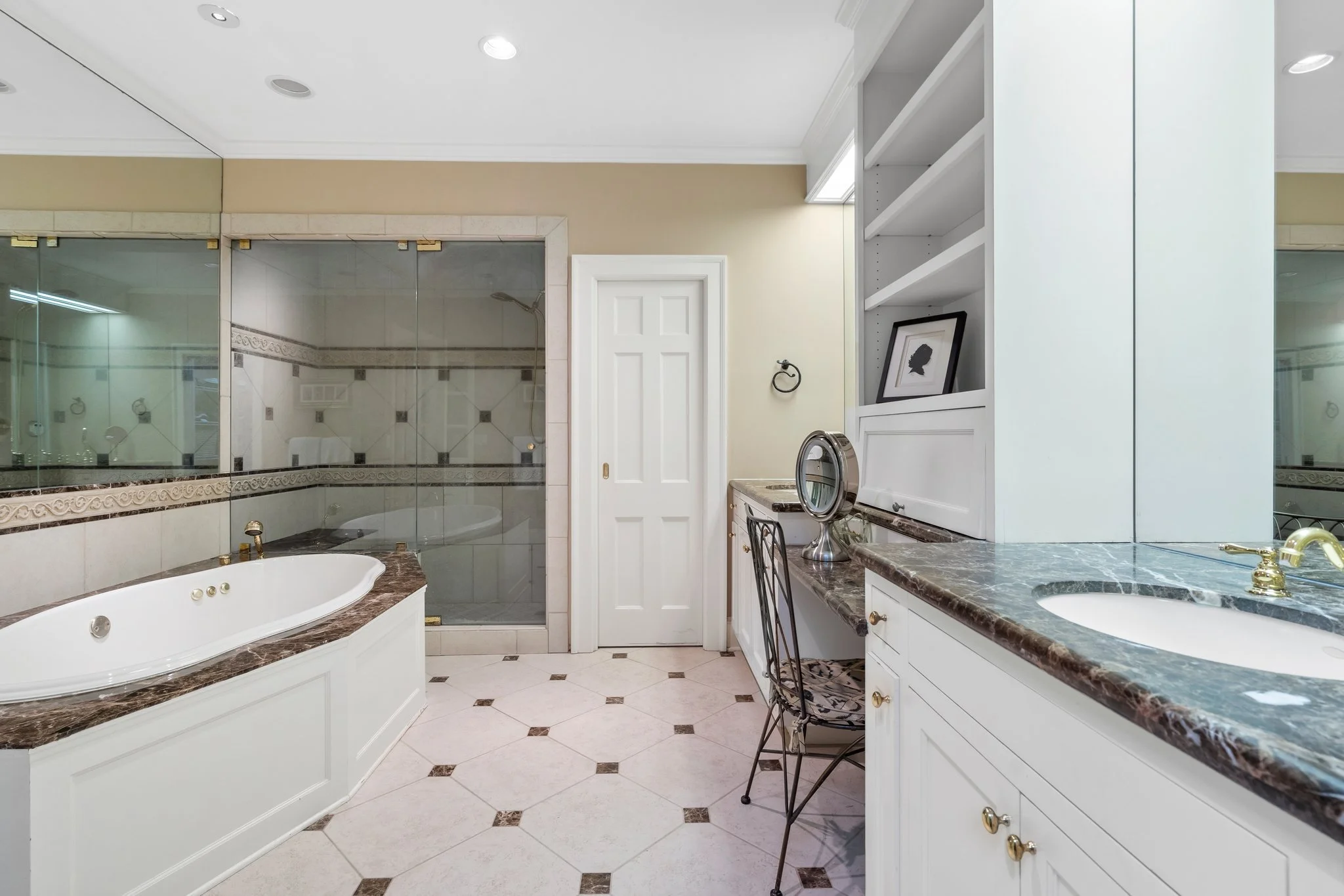 Originally built in 1932 and thoughtfully renovated in 1999, this elegant 4BR/3.5BA home offers nearly 5,000 sq ft of living space with timeless character and high-end upgrades. A gracious entrance portico opens to the foyer with 10’ ceilings, original red oak hardwoods, and formal living and dining rooms. The spacious main-level owner’s suite features a striking garden vista to your own private sanctuary beyond, dual walk-in closets, and a luxurious bath with heated floors, steam shower, and Whirlpool tub.